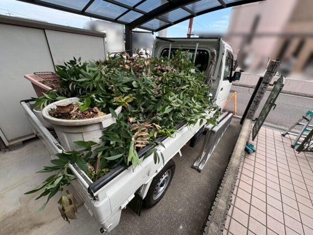 弊社は工務店なので、植木を切るの専門外です。植木屋さんのような技は持ち合わせていない事を承知して頂き、作業に取り掛かりました。