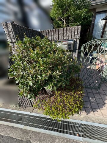 敷地を越えないよう、お隣様側は特にしっかり切り落としています。