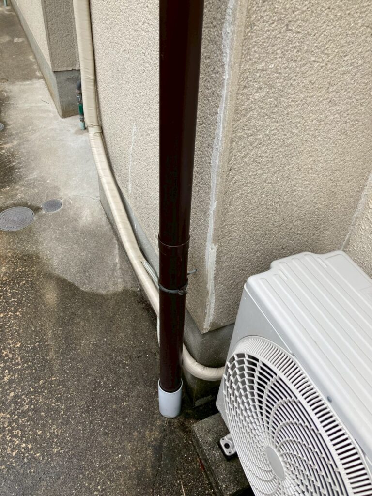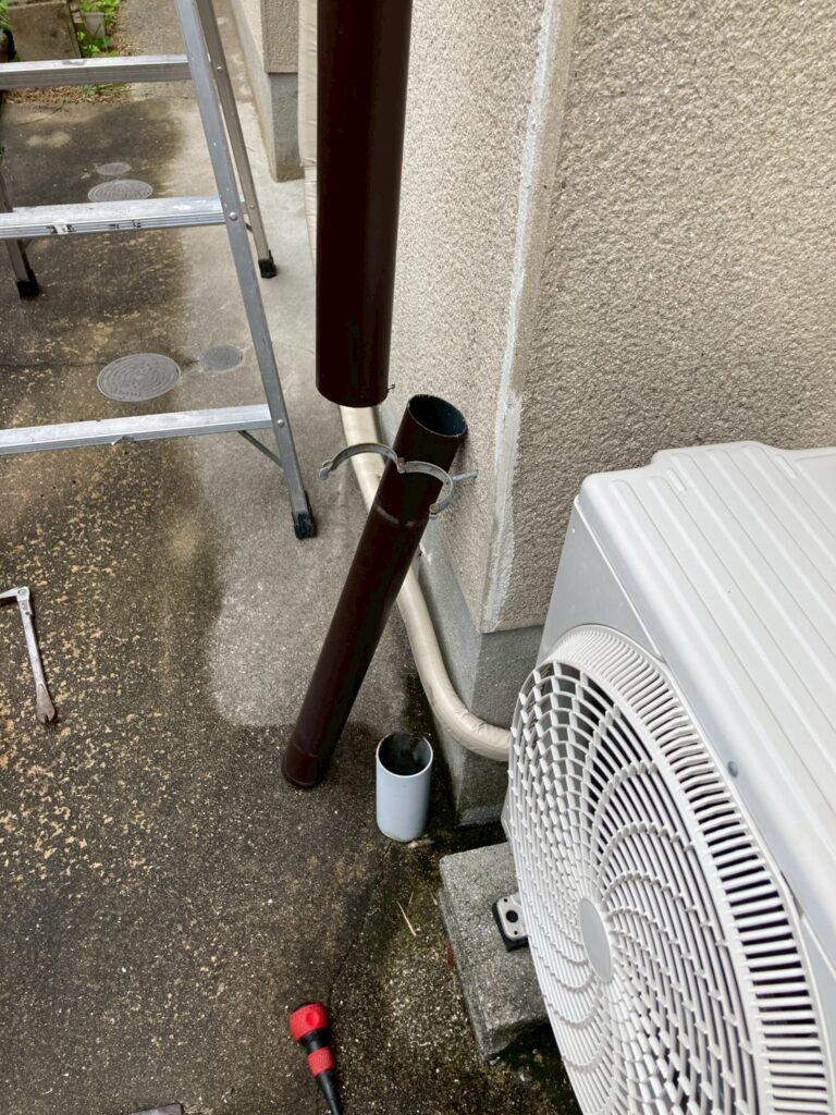 切断した竪樋は、きちんと雨水が通るように繋ぎなおして完了です。