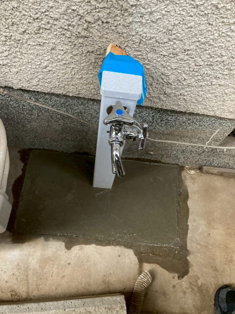 新しい立水栓が取り付けられました。この日はコンクリートを打設して終了です。