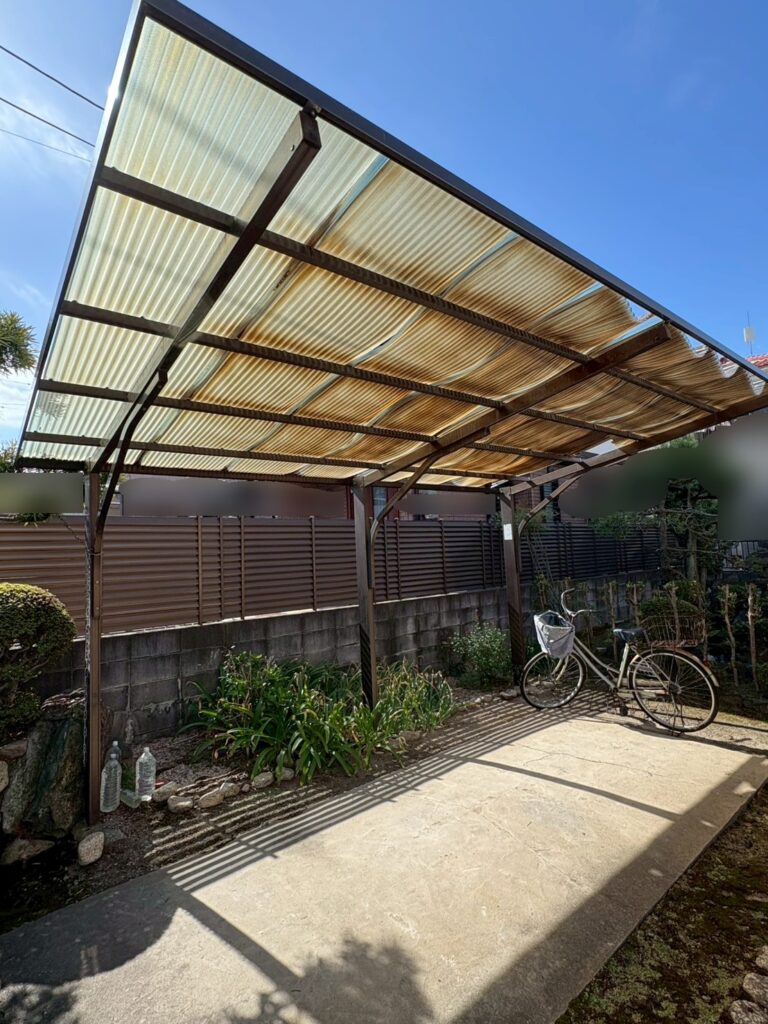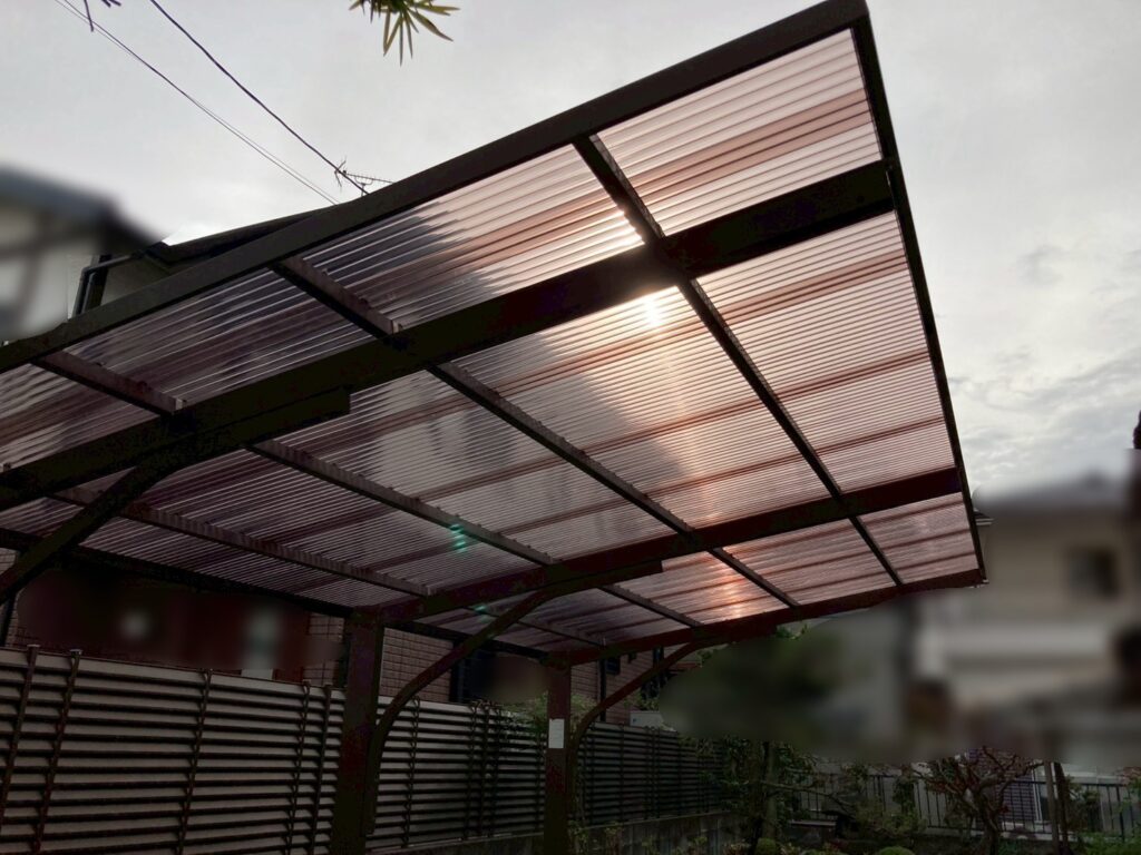 O様邸の駐車スペースの屋根は、その波板が張られています。
