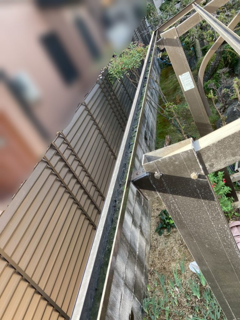 こちらのフレームは波板の下に雨樋がある作りのため、波板を撤去しないと雨樋の状況を確認できません。