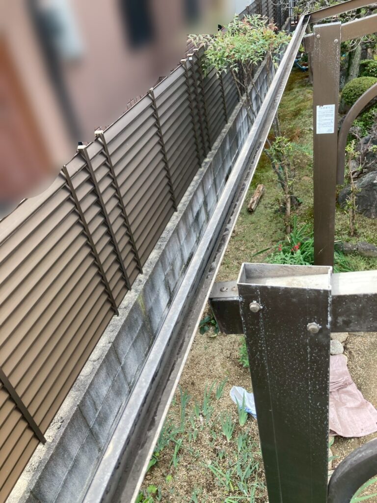 雨樋はゴミが溜まっており、全体に苔も生えています。