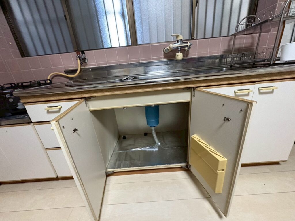 給水管・給湯管・配水管、ガス管を新しいキッチンに合わせて移動します。