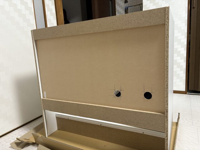 給水管・給湯管が収まるように、現場合わせで加工を施していきます。