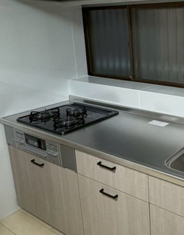 新しいシステムキッチンは【LIXILシエラS】ラスティックアッシュ色。