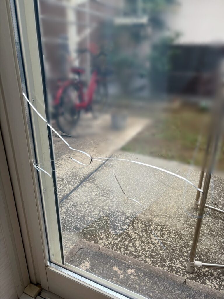 2025.12.15築11年の掃き出し窓。ペアガラスの室内側のガラスが『朝確認すると、割れていた』そうです。