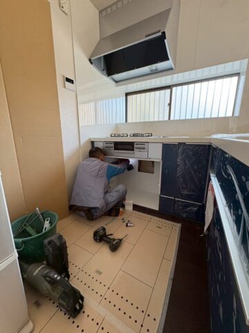 システムキッチンを解体しています。