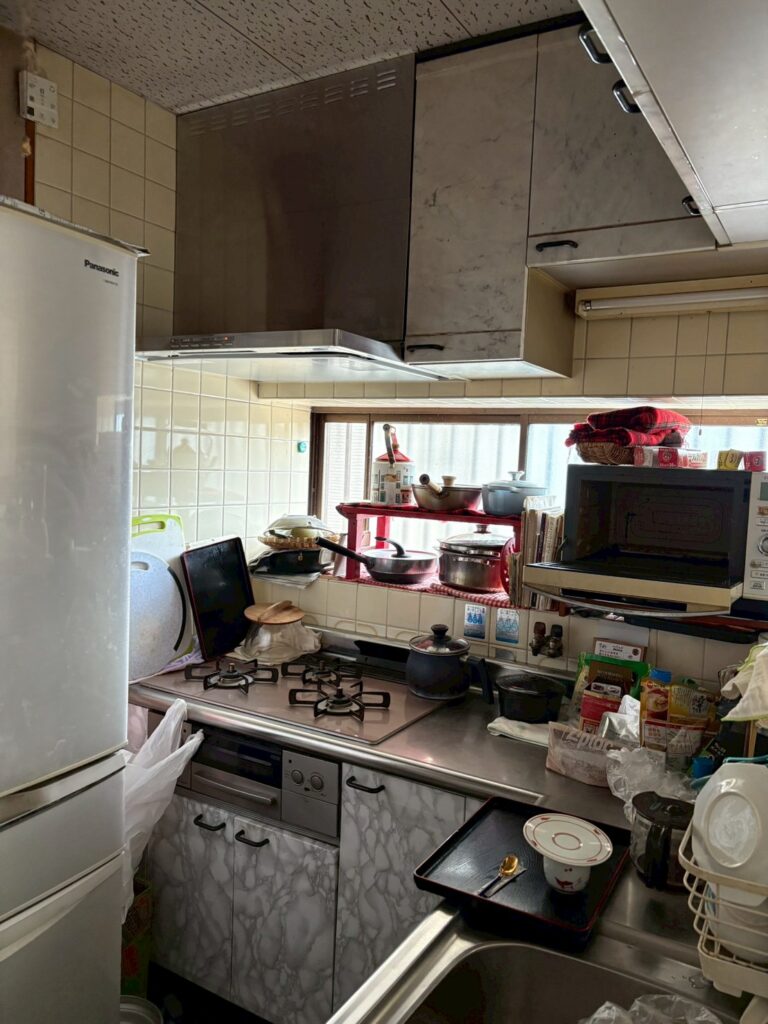 続いて、吊り戸棚とレンジフードが撤去されました。