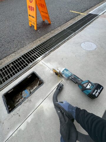コンクリートに切断面を入れます。
