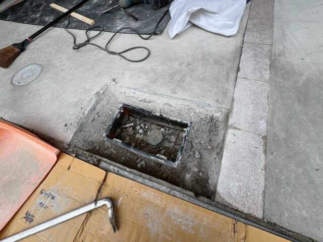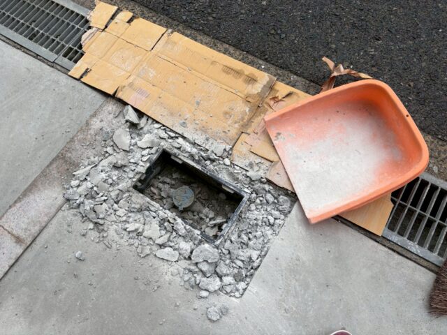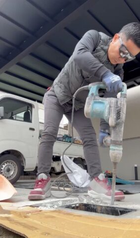 量水器ボックスの周囲のコンクリートを割って撤去します。