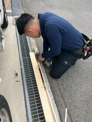一方、外では新しく取り付けるレールを加工します。