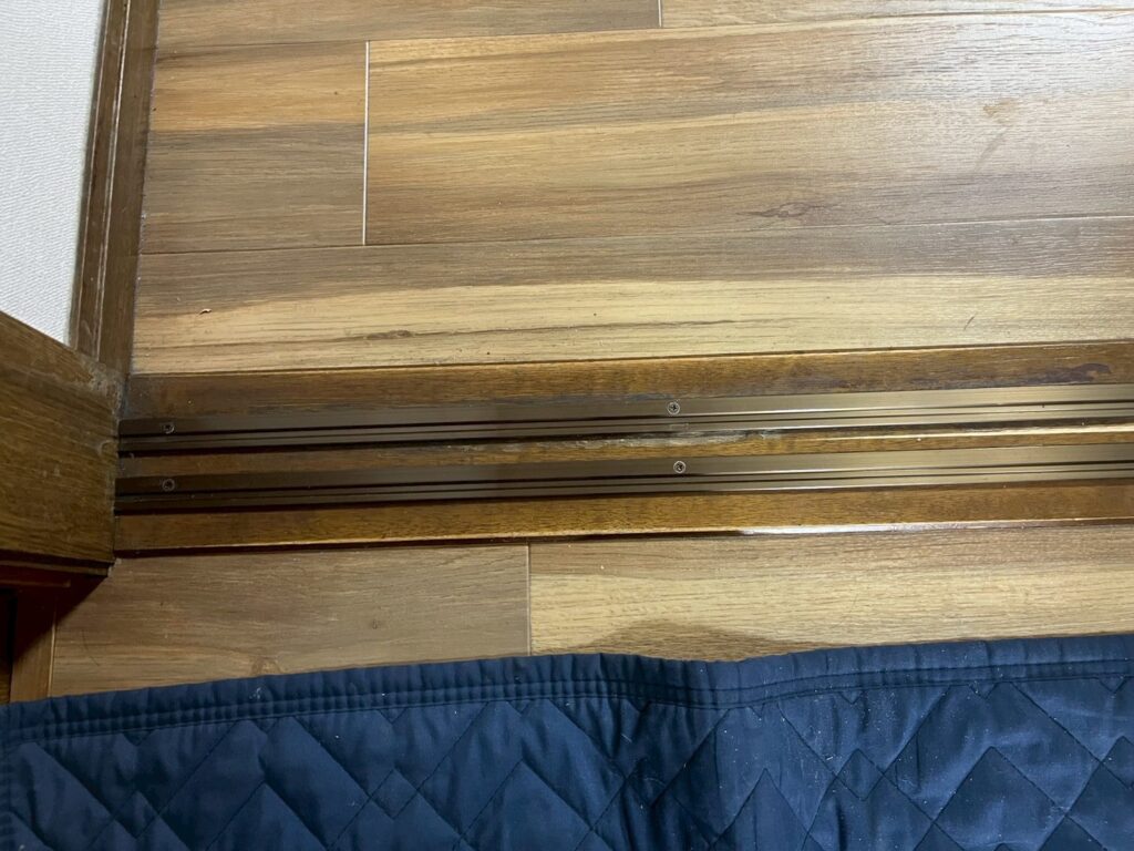 敷居には埋め込みレールが2本。こちらを撤去します。