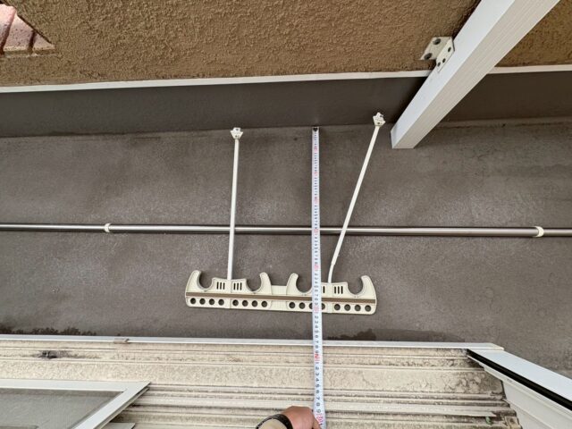 吊り下げ物干し取替え工事を行います。先ず、既存の物干しを取り外します。