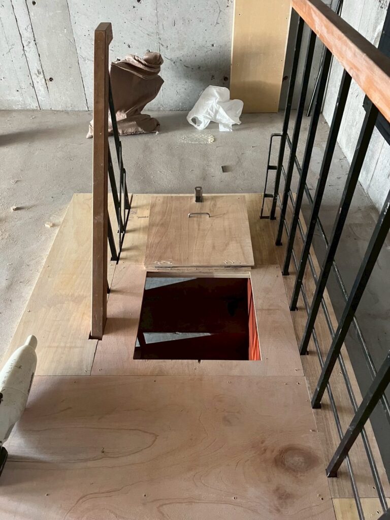 点検や万が一の際には、オーナー様が開閉できるよう、簡易的な侵入口を造作しました。